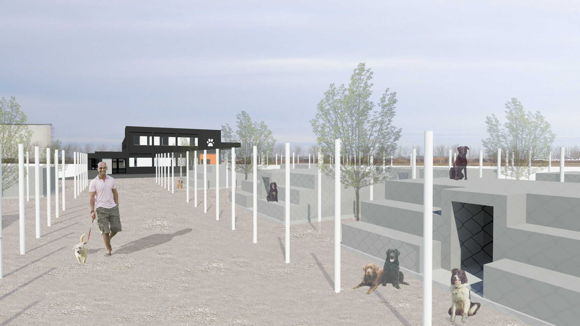 Grad Beograd, opština Palilula narucila je projekat kompleksa centra za sterilizaciju napuštenih pasa . U okviru lokacije uvedena je pristupna saobraćajnica i parking prostor. Kompleks se sastoji od glavnog objekta u kome se nalazi medicinski blok, administrativni blok, smeštaj, karantin i oporavak pasa povrsine 627m2. Drugi deo kompleksa čini plato sa 47 delta kućica, koje služe za grupni smeštaj pasa. ukupne povrsine 1230 m2.Procenjena vrednost investicije je 1,2 miliona evra.