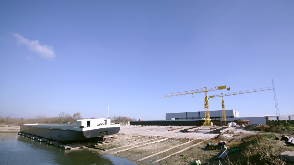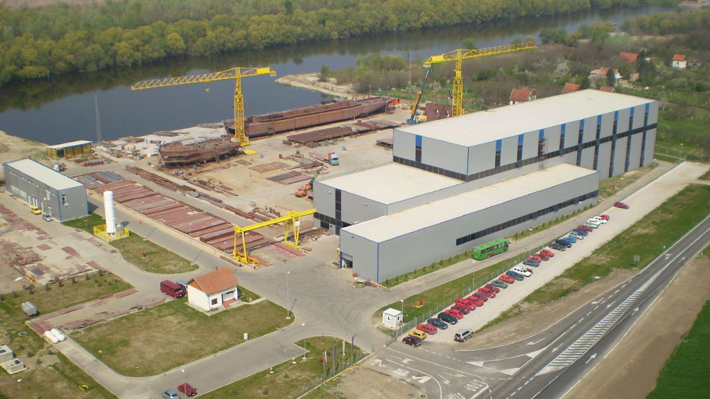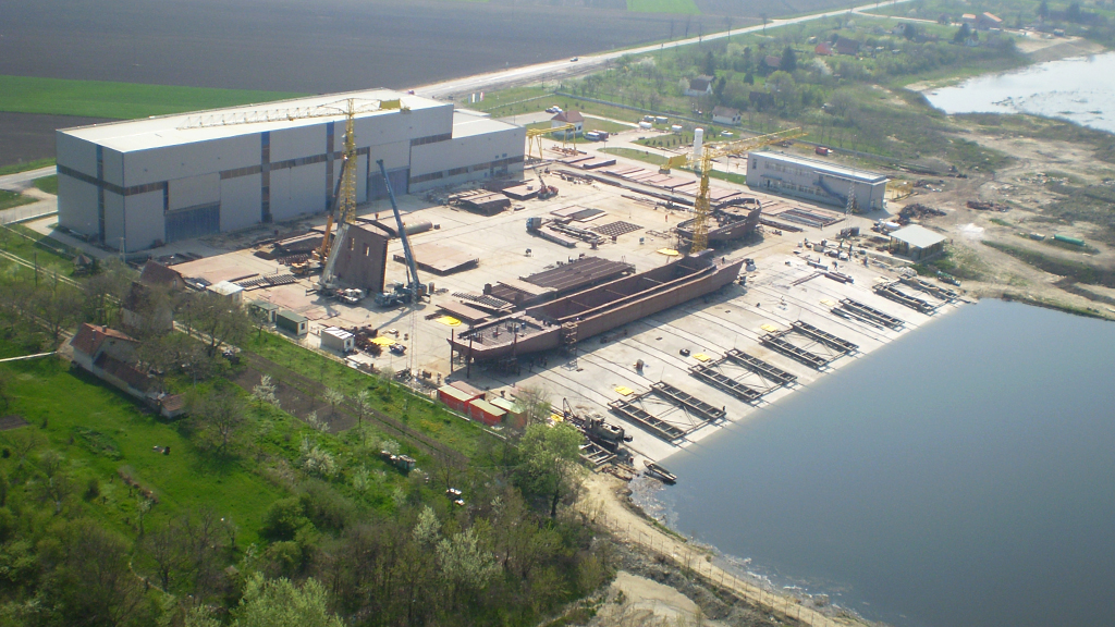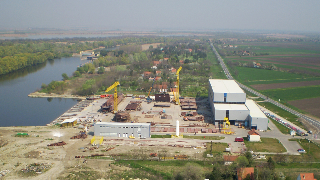 U zoni magistralnog puta Zrenjanin – Beograd na 15-om kilometru od Zrenjanina izgradila je brodogradilište sa navozom za brodove do 120 m dužine i 20 m širine, proizvodnu halu sekcija sa 3 kranske staze ukupne površine 4400 m2 i visine 25 m, skladištem tehnoloških gasova, kompresorskom stanicom, trafostanicom i dalekovodom, garderobom i restoranom, upravnom zgradom i svom ostalom pripadajućom infrastrukturom.